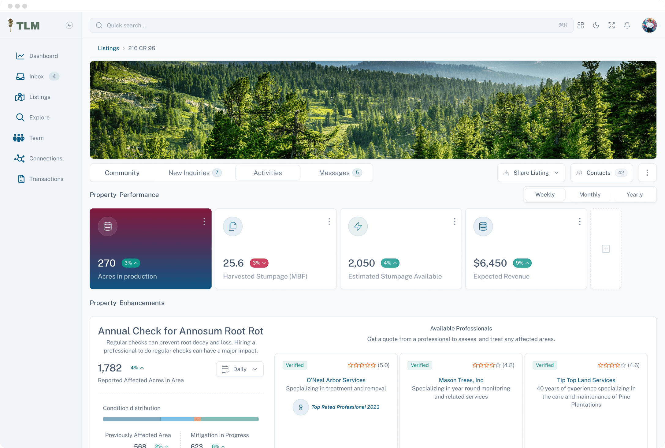 Your land is unique. Highlight its best features and connect with industry pros who are looking to lease, buy, or harvest exactly what you have to offer.