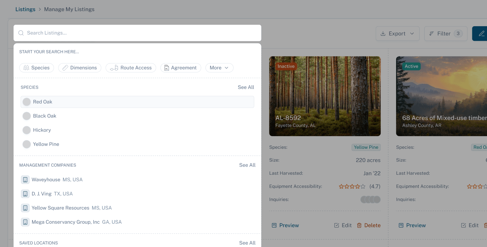 Search unlike ever before for the specifics that matter to you, from species and age to diameter and site accessibility for trucks.